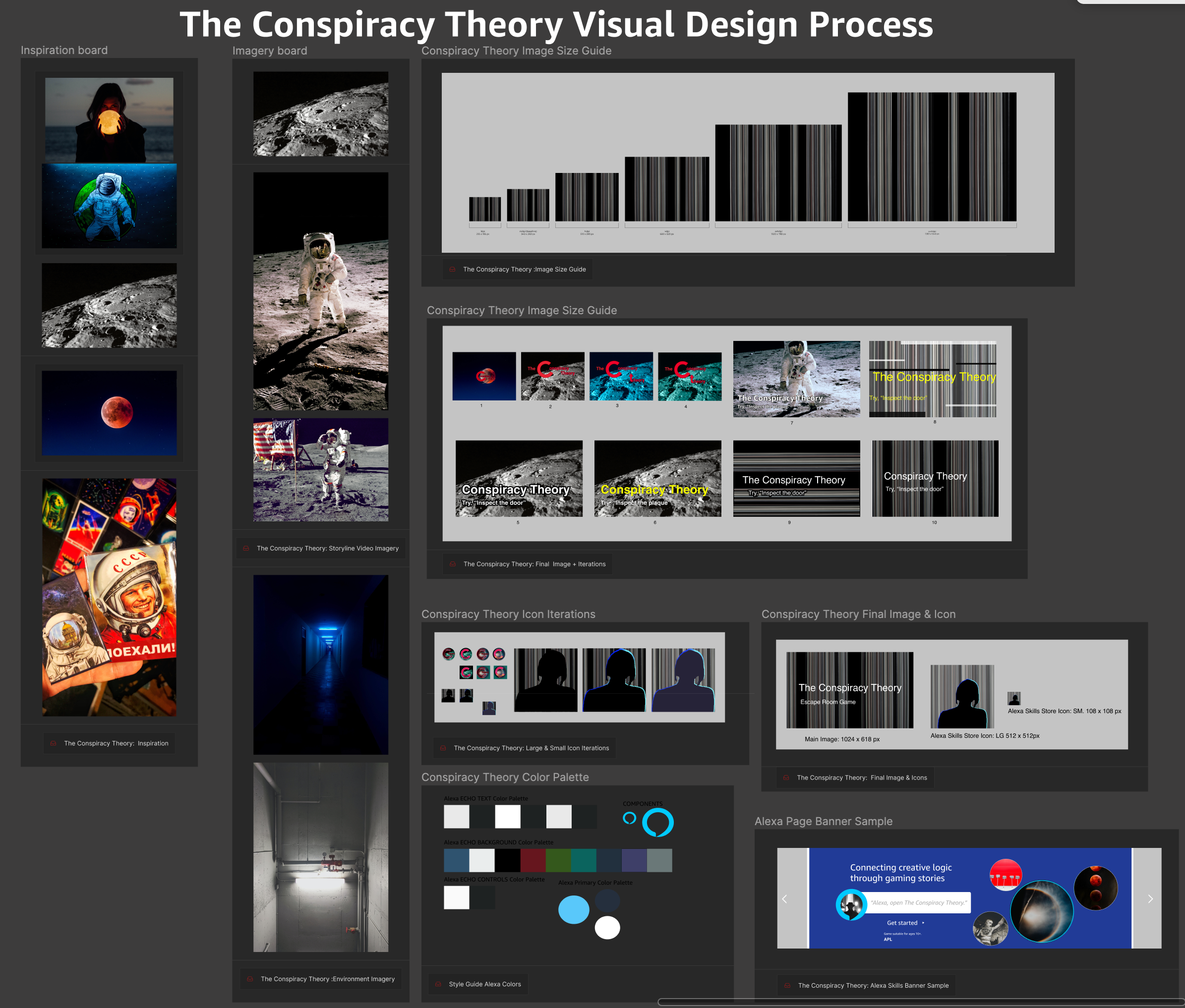 Our visual and video design process kicks off this week! A mid-fi wireframe was recently created to capture the visual imagery and presentation of the product and determine the tone and branding of our main image and logo. While it's a voice project, our project must be visually packaged with vision and passion for users to find and play on Amazon.